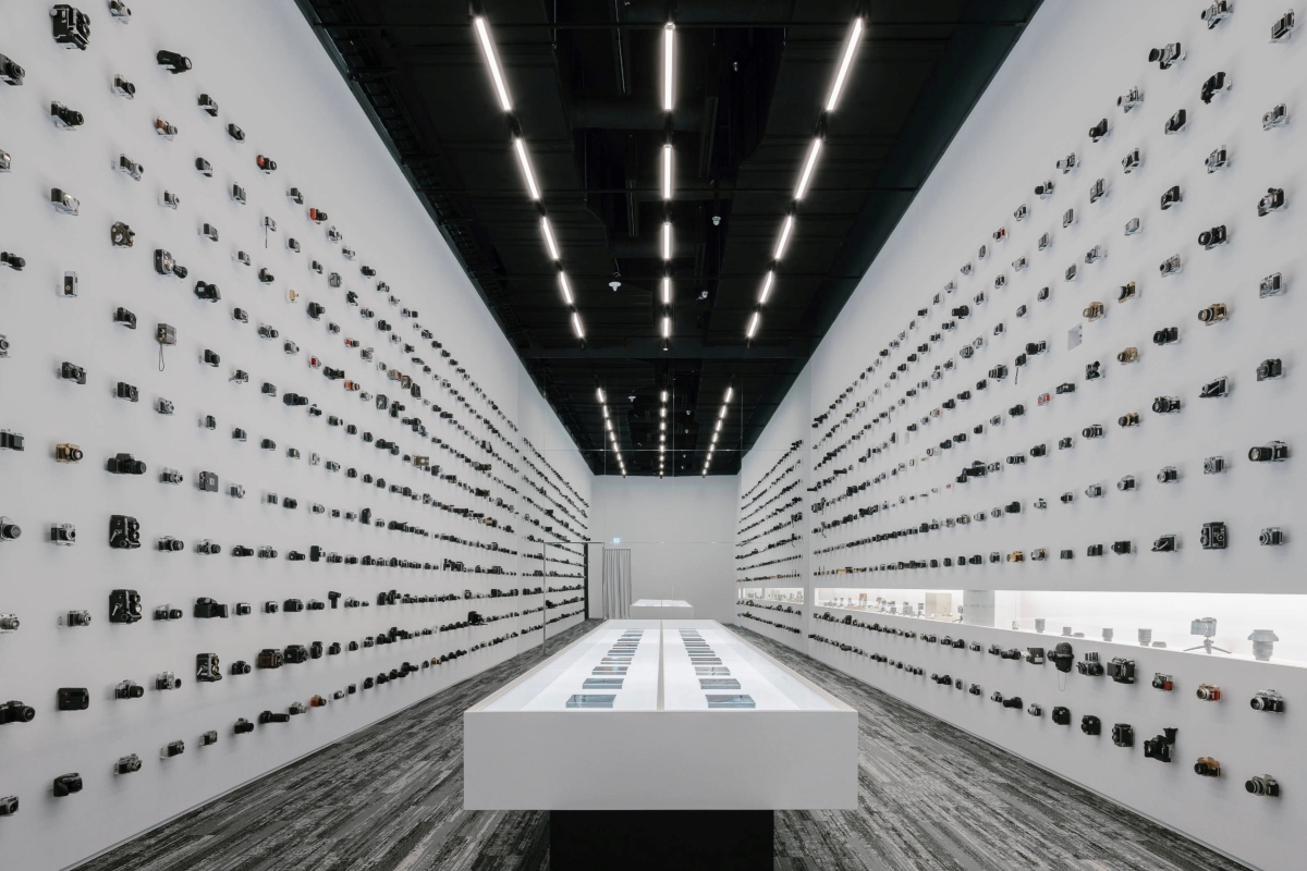 Archiving and Recording Audio and cameras share the common goal of recording. At the center of this room are pieces by photographer Taiki Fukao, who reinterprets the museum’s collections through his unique perspective. Seven hundred cameras line the walls of this special exhibition gallery. Among them, you’ll find models from the iconic Leica M series, which are on display in the glass case with lighting located in the center of the wall.