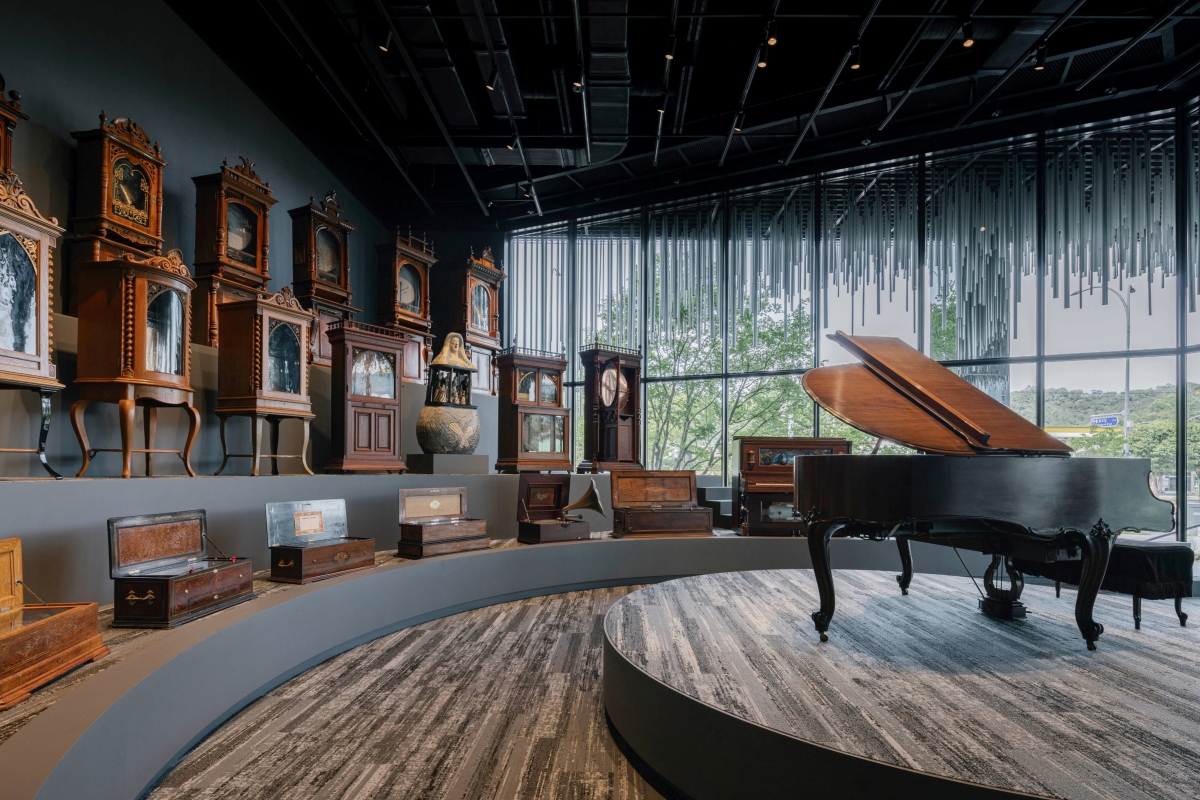 The Music Box This gallery features a diverse range of music boxes. Before the invention of music boxes, people relied on professional musicians to enjoy music. The development of music boxes revolutionized this experience, making music more accessible and familiar to the public. Among the highlights is a coin-operated player piano, once a popular attraction in amusement parks, of which you will have a chance to listen.